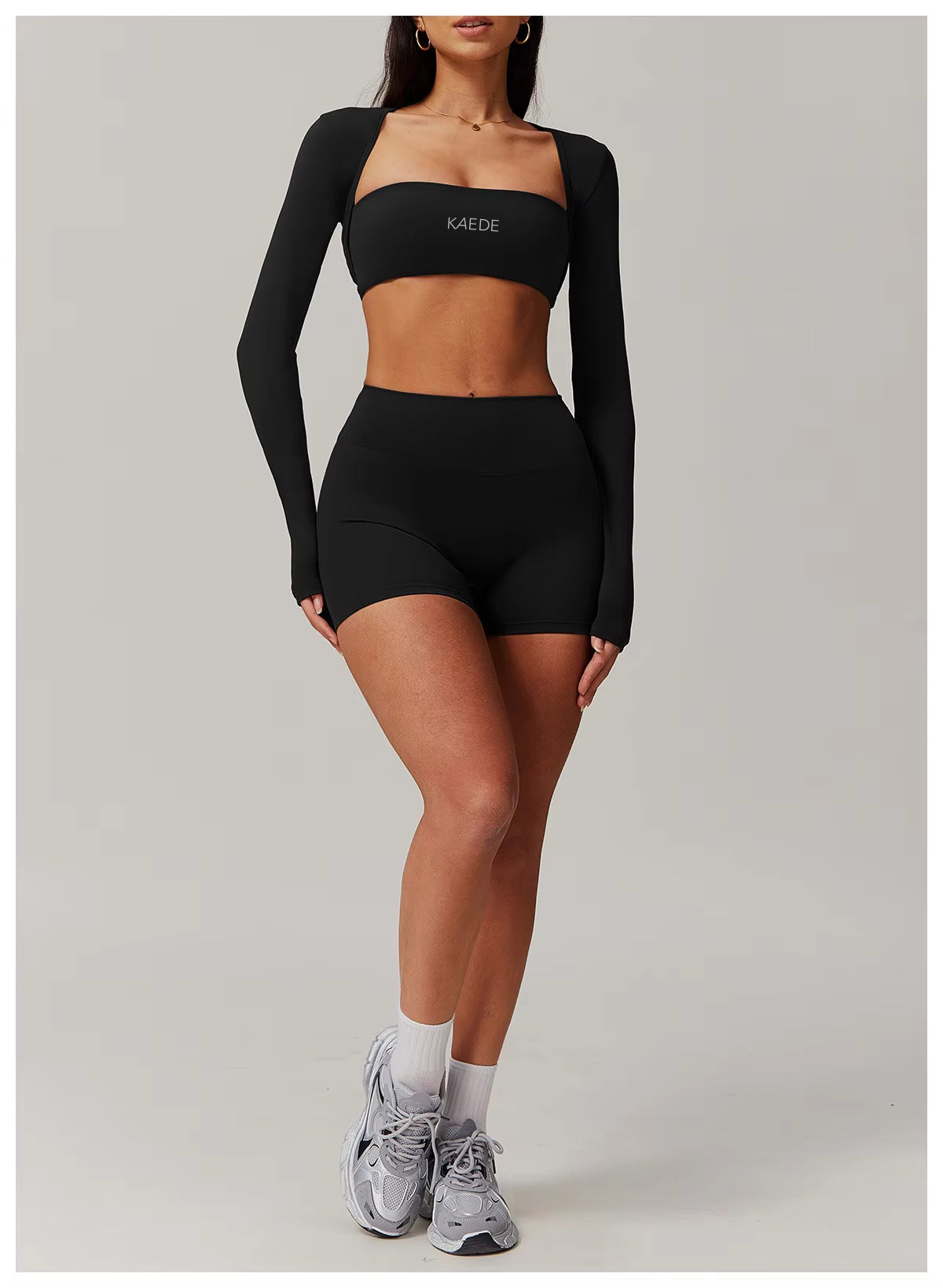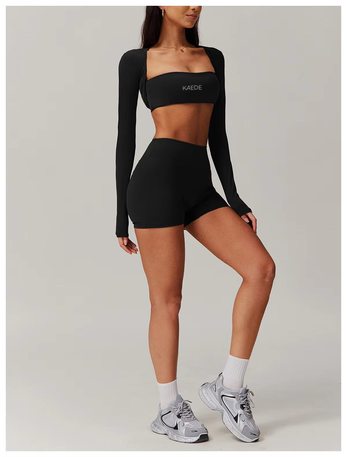 - Sömlös crop-top med bolero-inspirerade ärmar